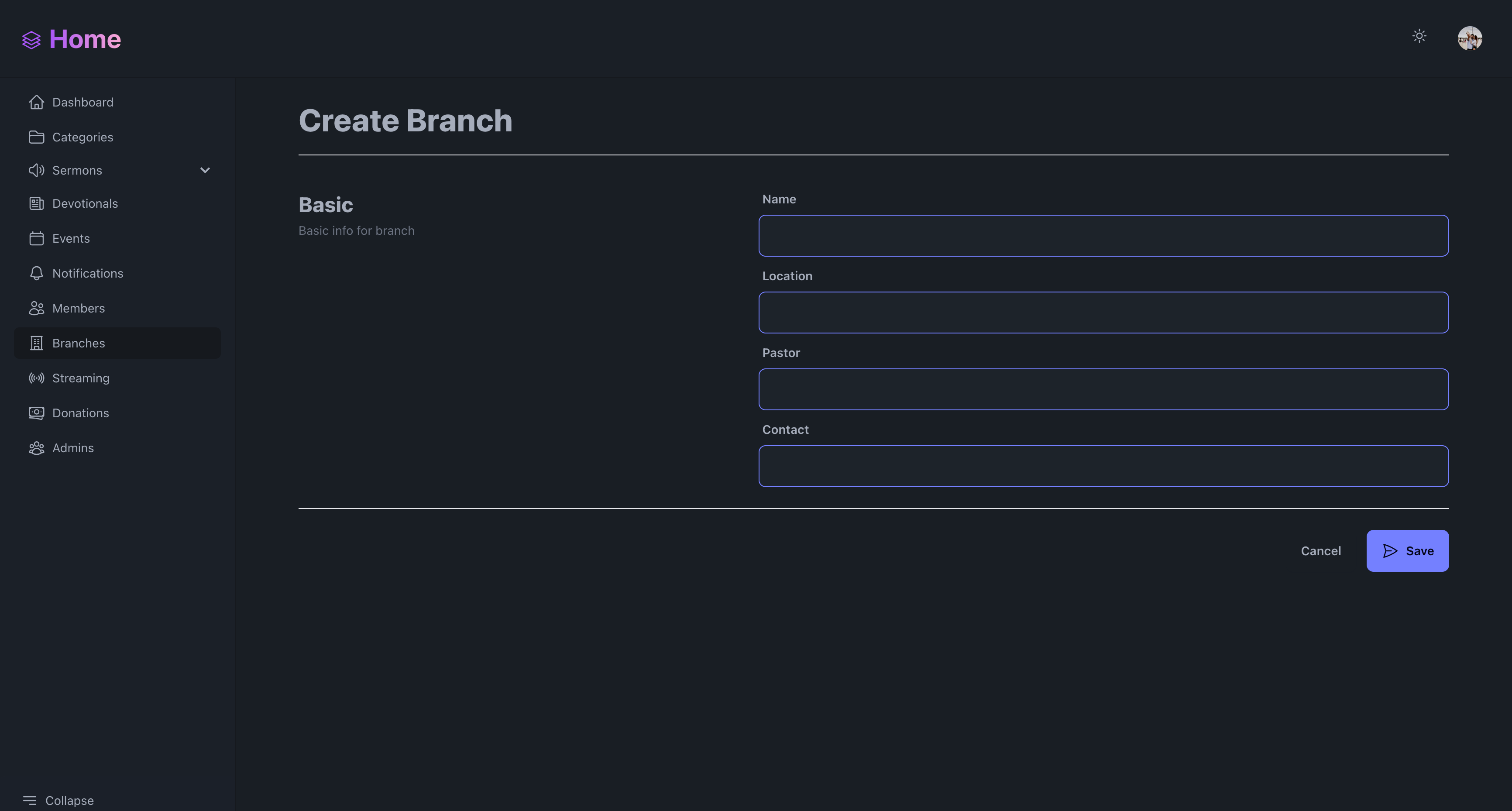 The Branches feature empowers your church to **highlight satellite campuses, sister churches, or ministry extensions** within TheFaithApp. This centralized directory helps members locate nearby branches, connect with local leadership, and stay engaged with your church’s broader community.